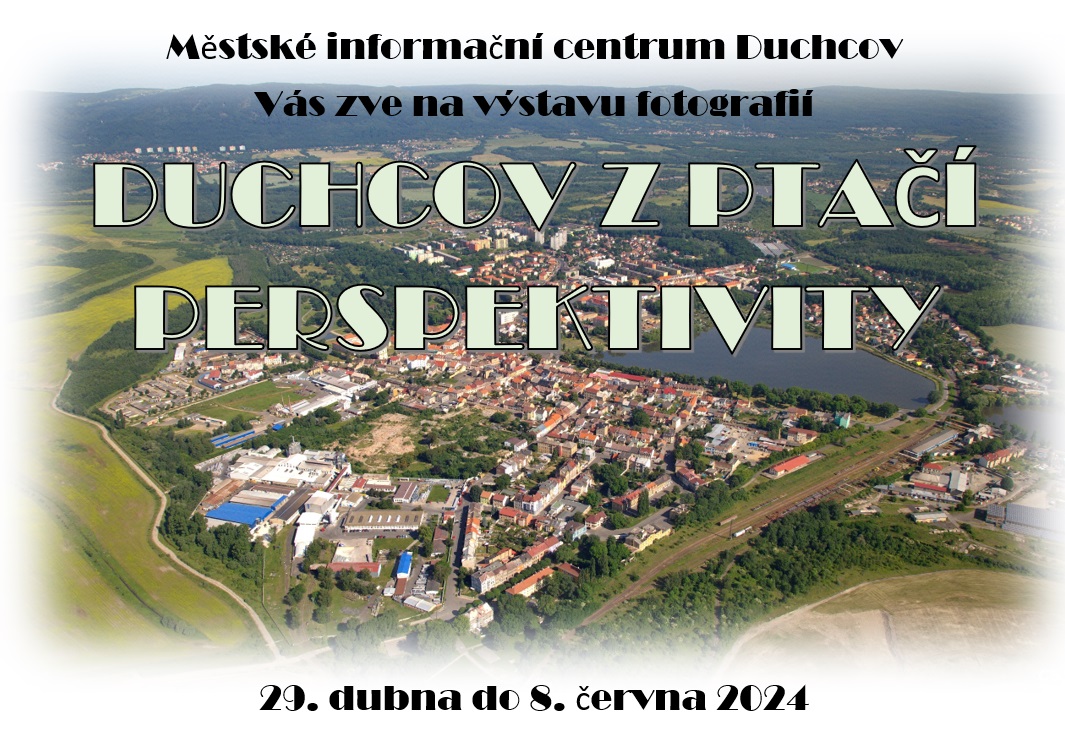 | | | | | | DUCHCOV Z PTAČÍ PERSPEKTIVITY 29. 4. – 8. 6. 2024, Městské informační centrum Duchcov - Výstava fotografií Duchcova.