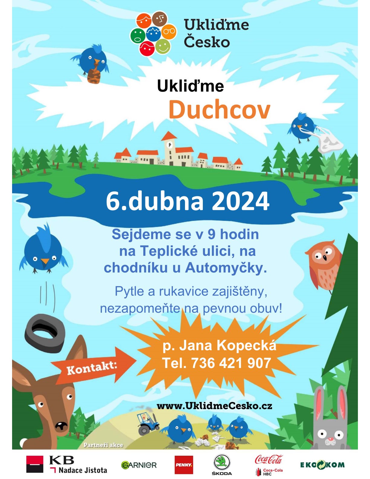 - Kontakt: paní Jana Kopecká tel.: 736 421 907, www.UklidmeCesko.cz